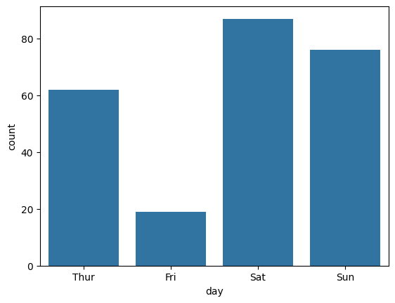 sns.countplot(data = tips_df, x = 'day')