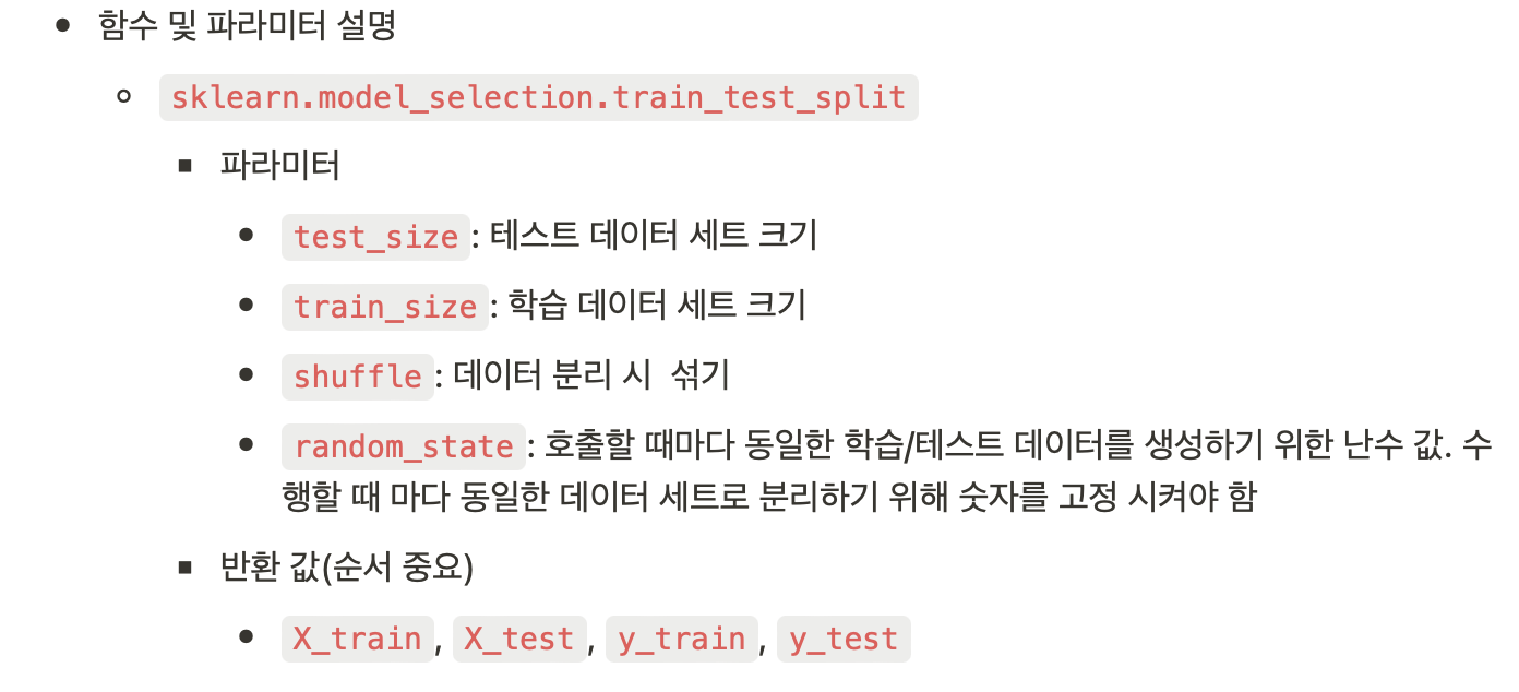 - 학습 데이터 (train data) : 모델을 학습(fit)하기 위한 데이터