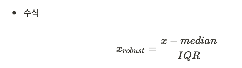 - 정의: 중앙값과 IQR을 사용하여 스케일링