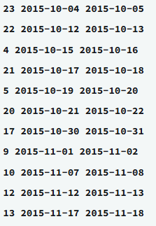 마찬가지의 끝나는 날짜를 카르시안 곱을 해서 모든 경우의 수의 Start_Date, End_Date를 출력하라