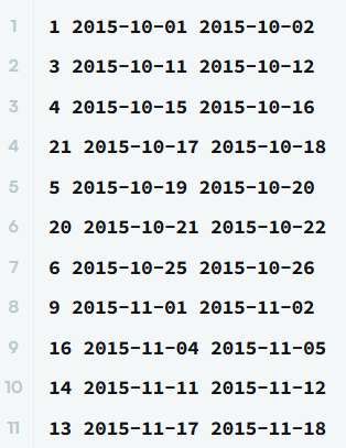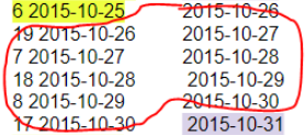 즉, 2015-10-01의 시작날짜는 End_Date컬럼에 없다는 것