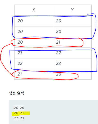 그렇다면 (X1, Y1)을 기준으로 그룹핑하면 될라나? > 정답!