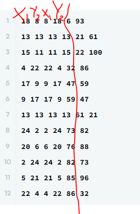 row_number을 보면 다른 행의 데이터 인데 (X1, Y1) , (X2, Y2) = (30,30),(30,30) 무엇이 문제일까?