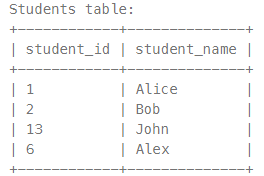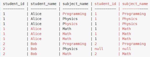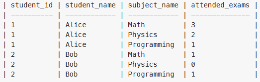 student_id및 subject_name로 정렬된 결과 테이블을 반환합니다.