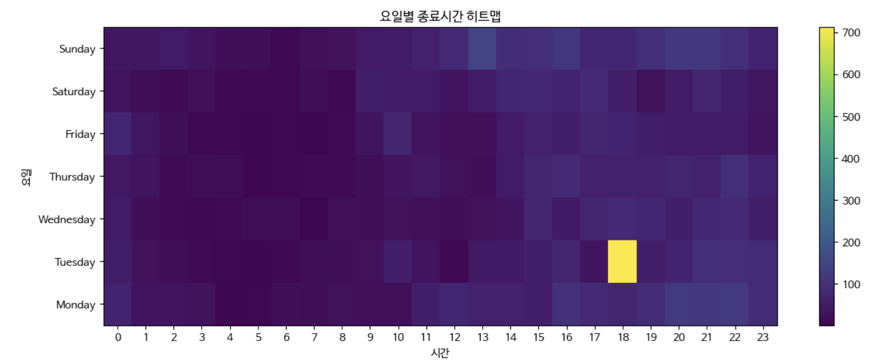 요일별, 시간별 모두 확인한 결과 화요일 18시에 접속자가 제일 많았다 |