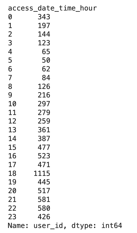 - 사용데이터: hourdata = sparta_data.groupby('access_date_time_hour')['user_id'].count()