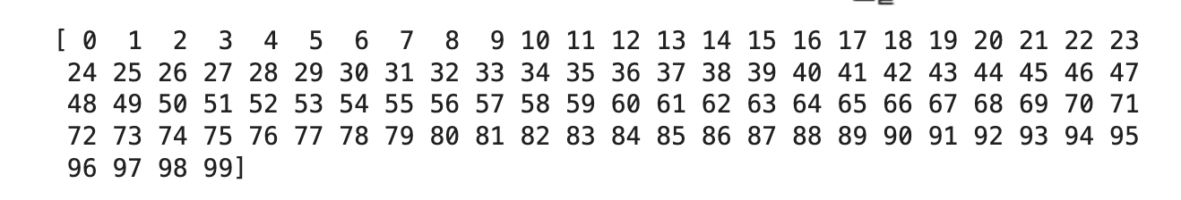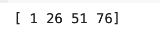 - np.arange(1,100,25) -> 1~100까지 25의 간격으로