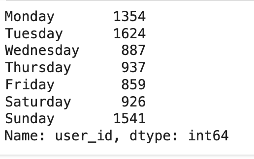 - 요일별 그룹화하여 사용자아이디를 계수한 데이터