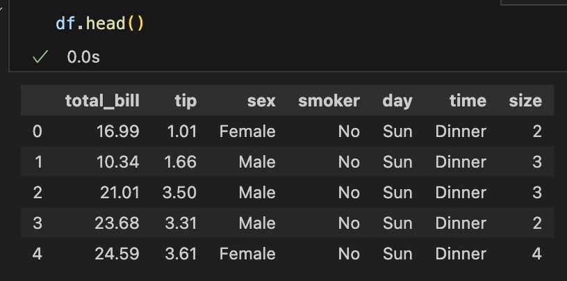 | .head() : 데이터를n개 행까지 보여줌 | ![]() |