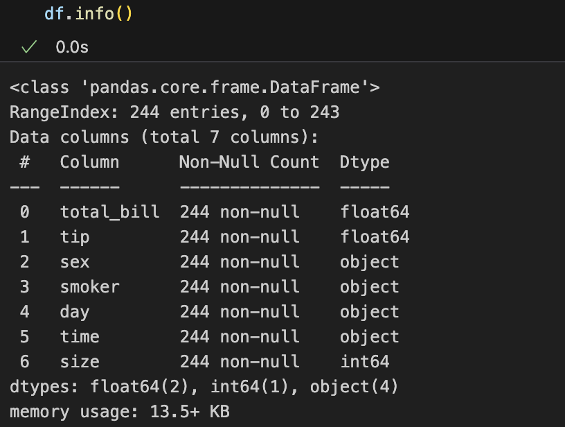 | .info() : 데이터의정보(인덱스, 컬럼명, 개수, 타입) | ![]() |