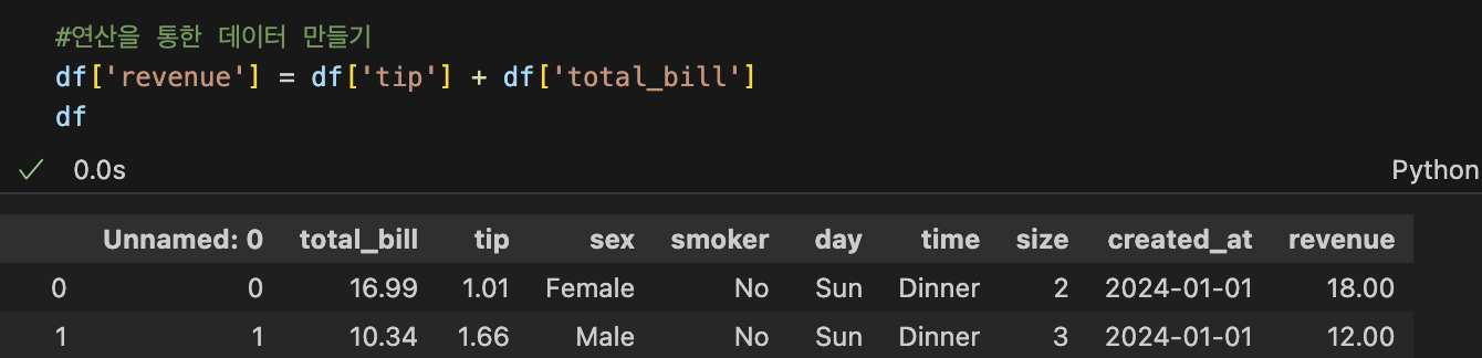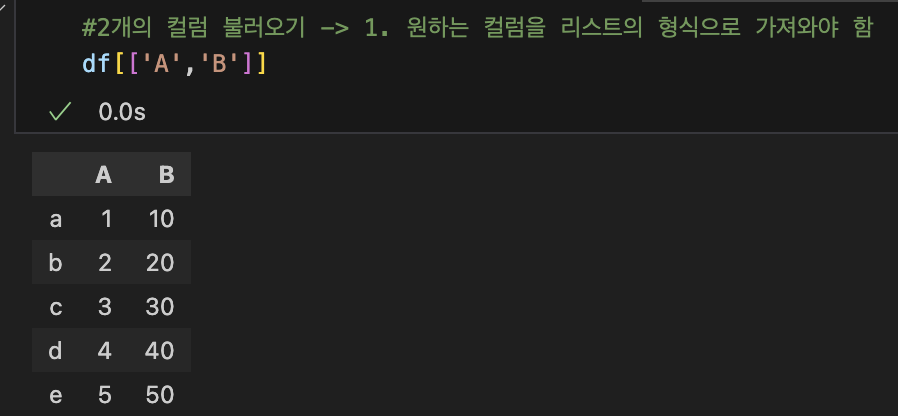 | #2개의 컬럼 불러오기-> 원하는 컬럼을 리스트로 불러옴 df[['A','B']] |